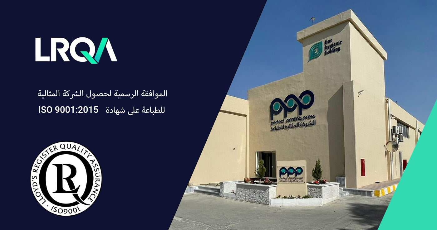 تعلن المثالية للطباعة، الشركة الرائدة في صناعة الطباعة التي تديرها مجموعة نقل – شركة فاين الصحية القابضة، بفخر عن حصولها مؤخرًا على موافقة LRQA لمعايير ISO 9001:2015.